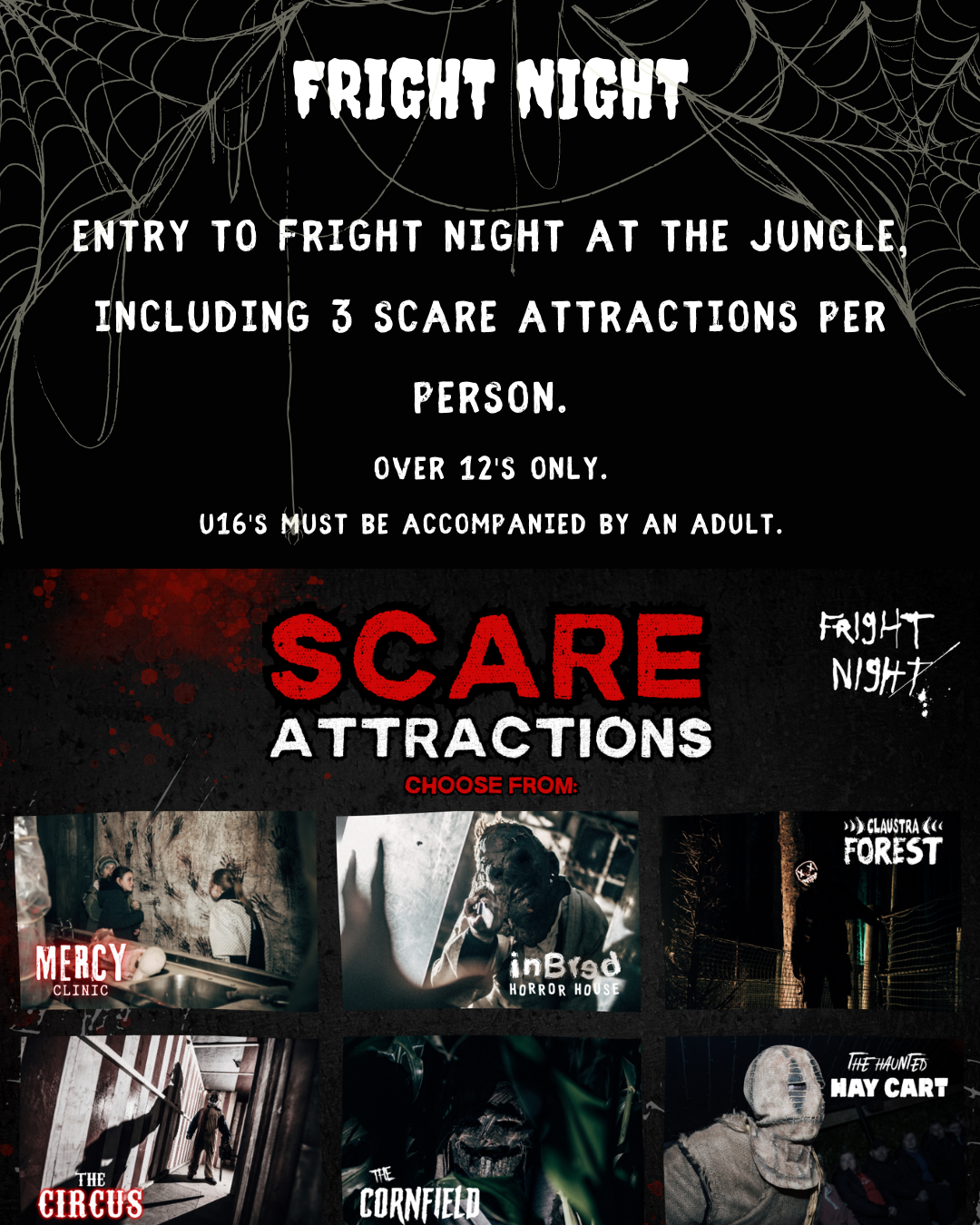 - Face the terror with entry to Fright Night at The Jungle—including 3 terrifying scare attractions per guest.