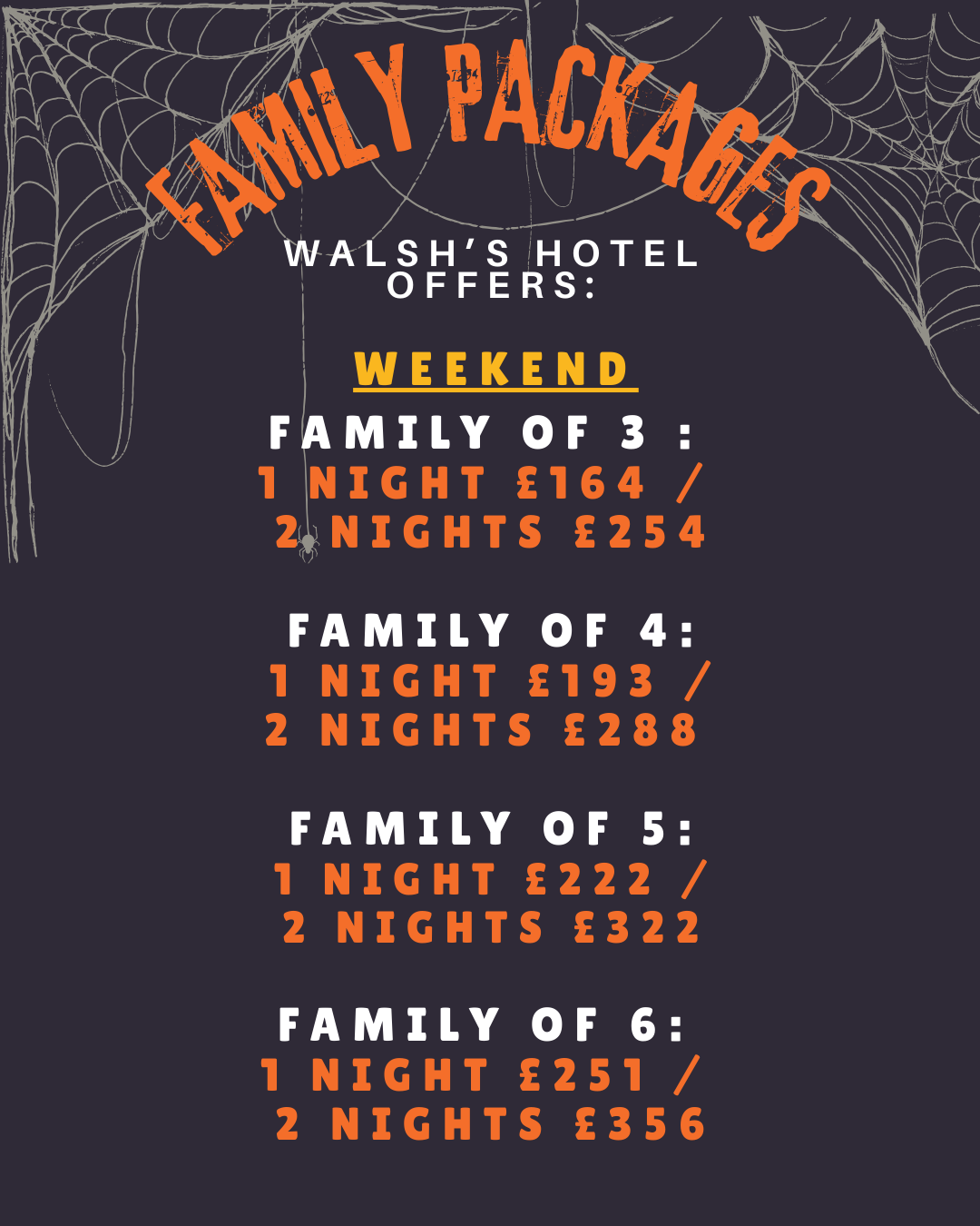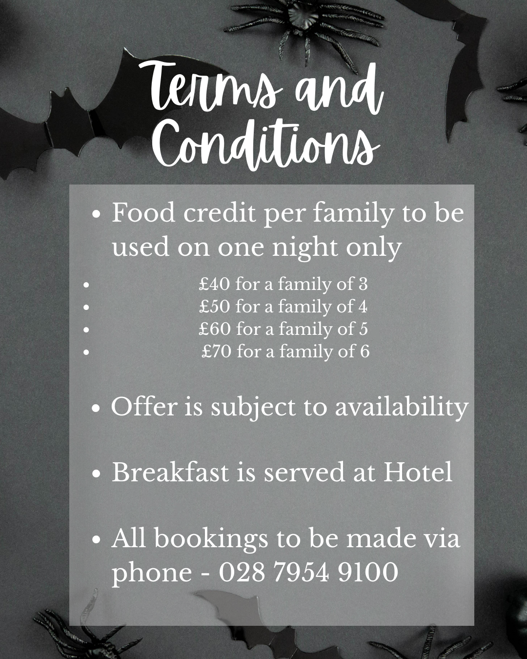 Call our team today to reserve your Halloween Mid-Term Getaway. 028 7954 9100